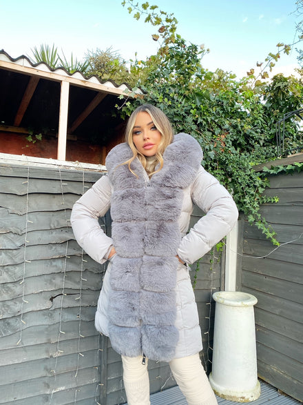 Imogen Faux Fur Cropped Gold Button Detail Jacket - Pink