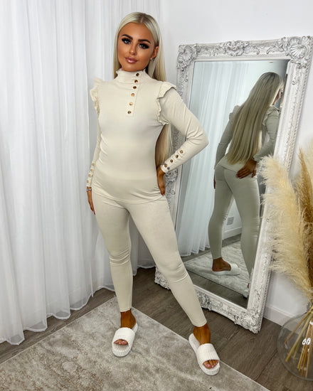 Evie High Neck Gold Button Loungewear Set - Light Pink