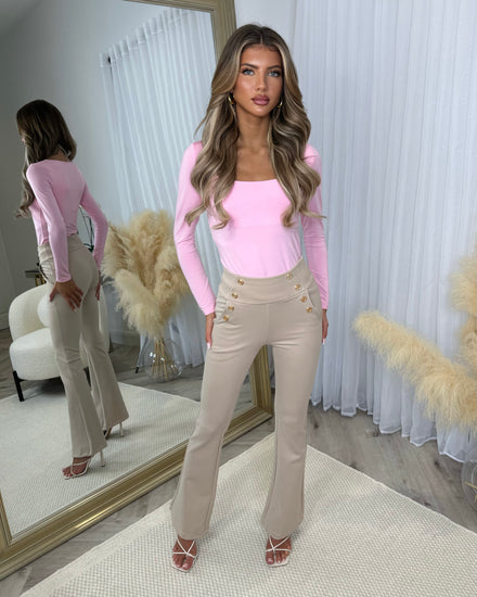 Claire Sculpt Jacket & Flared Trouser Set- Baby Pink