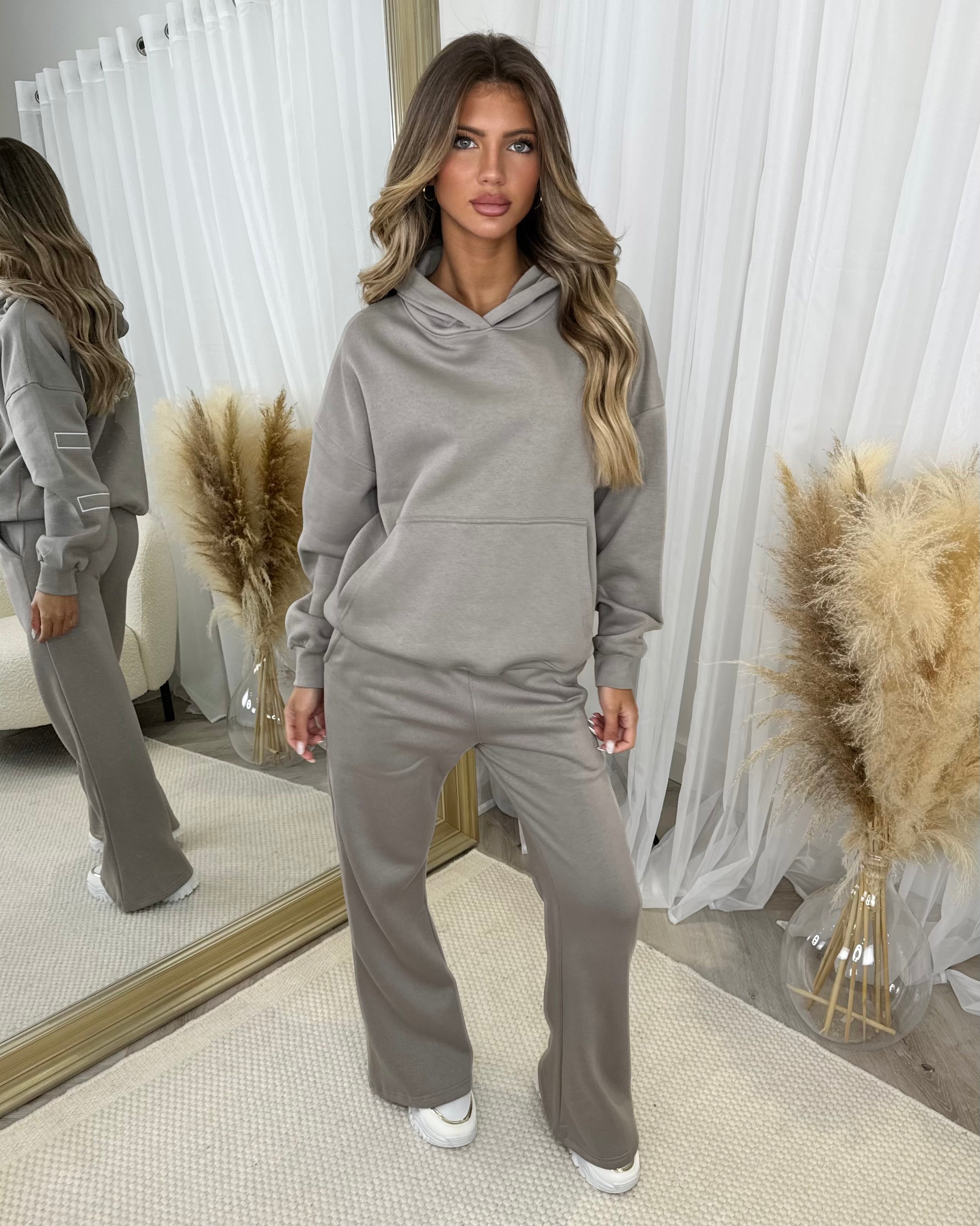 Ada Plain Fleece Lined Straight Leg Joggers - Dove Grey