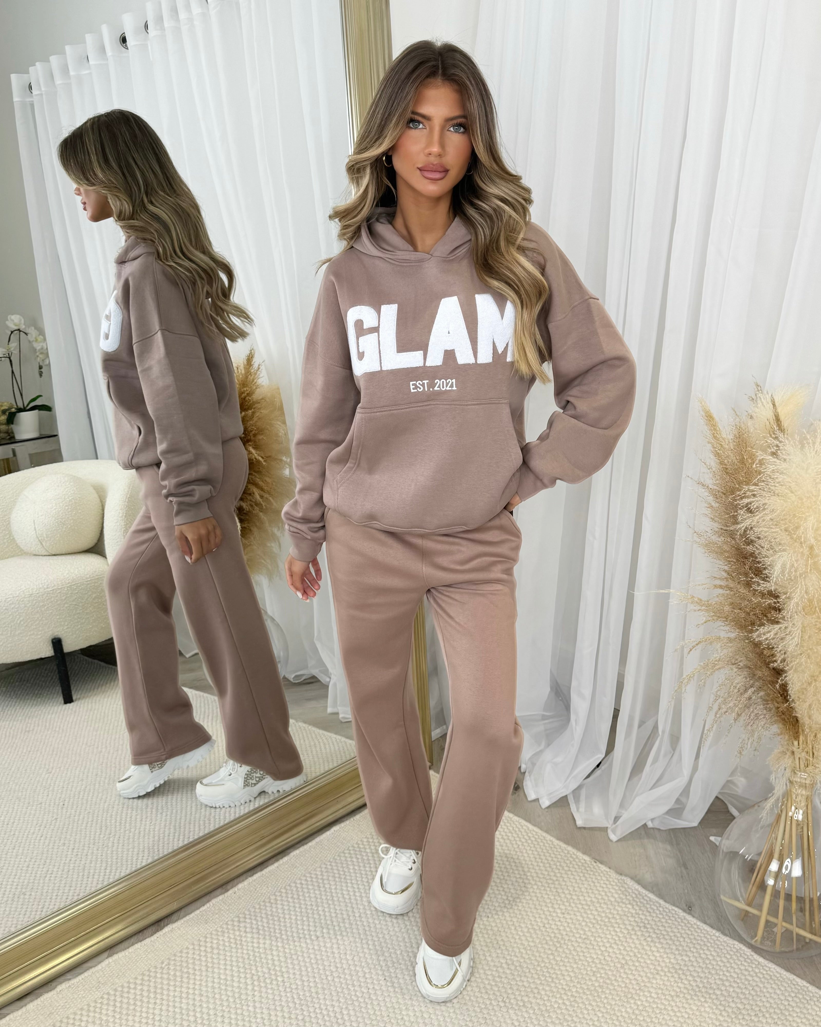 Ada Plain Fleece Lined Straight Leg Joggers - Mocha