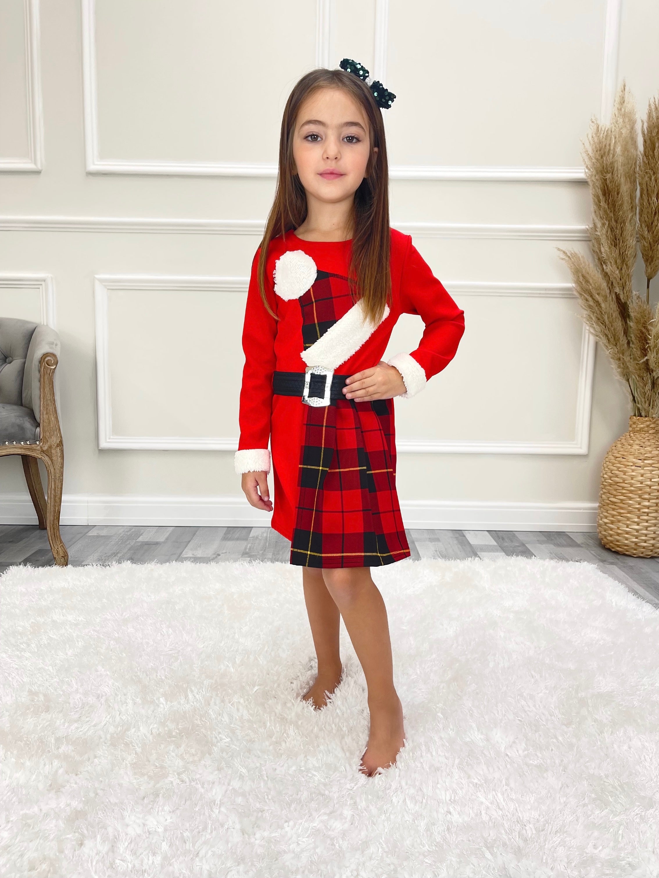 Checked Detail Kids Belted Christmas Dress