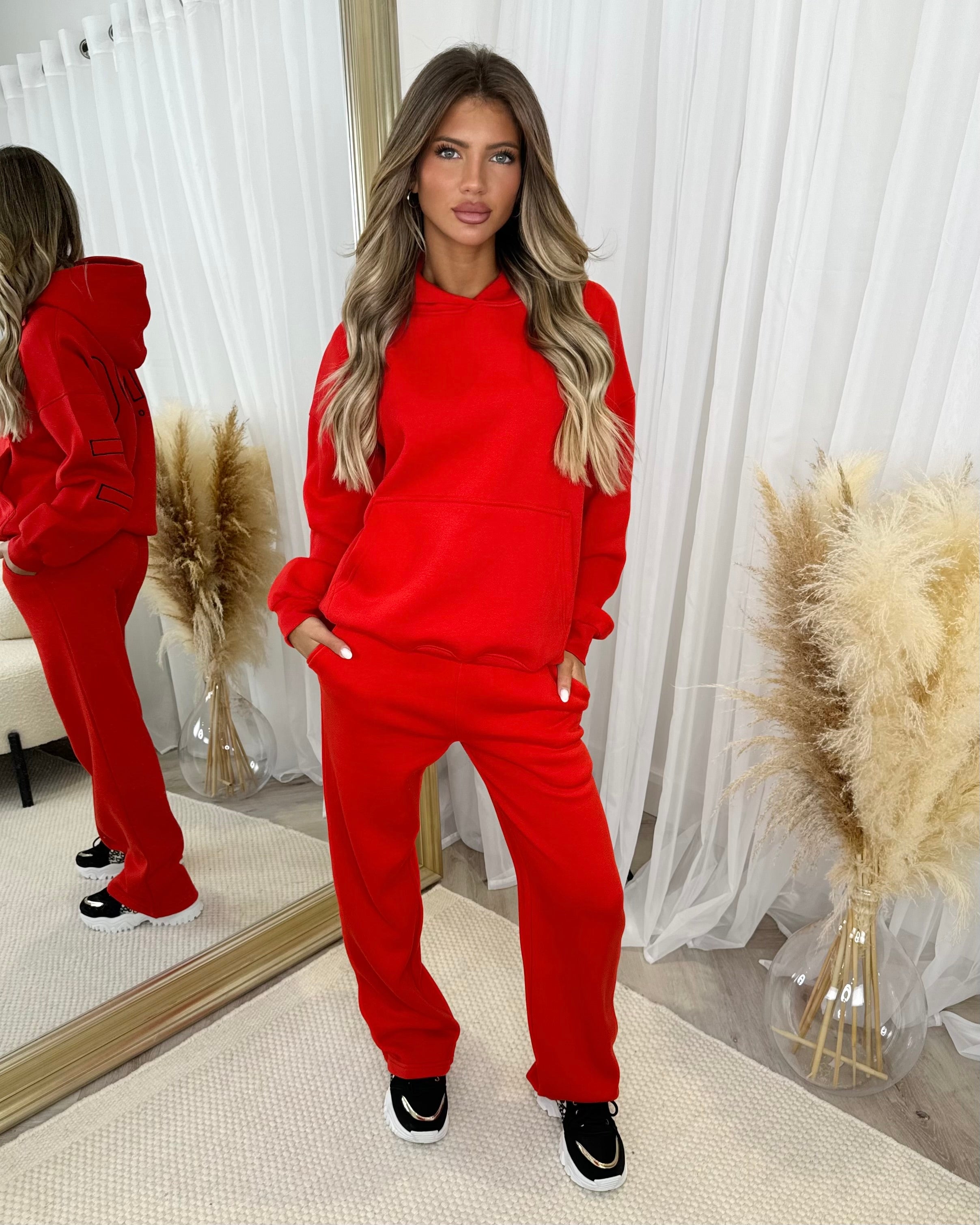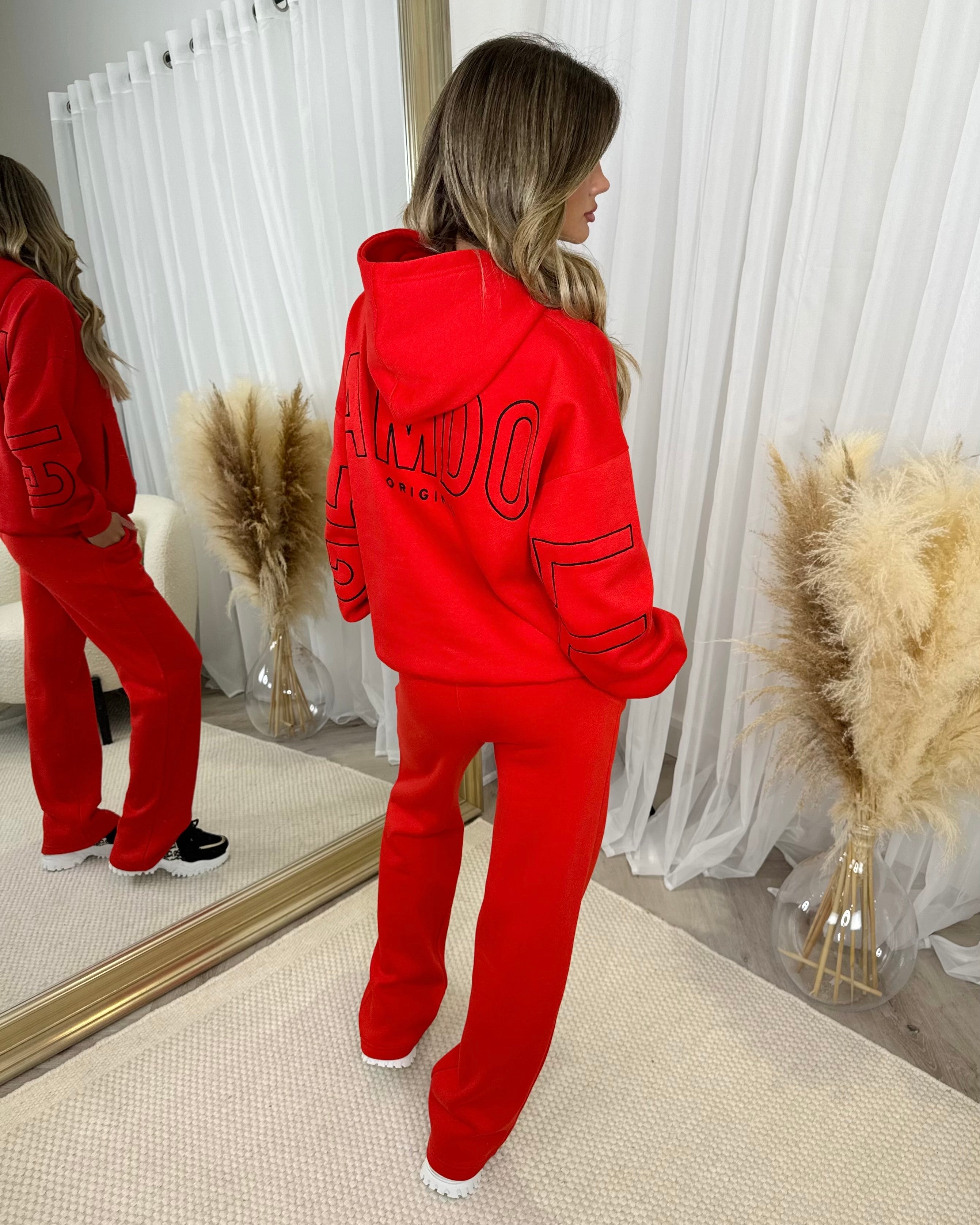 Clara 'GLAMDOLL' Embroidery Outline Detail Back Design Hoodie - Red