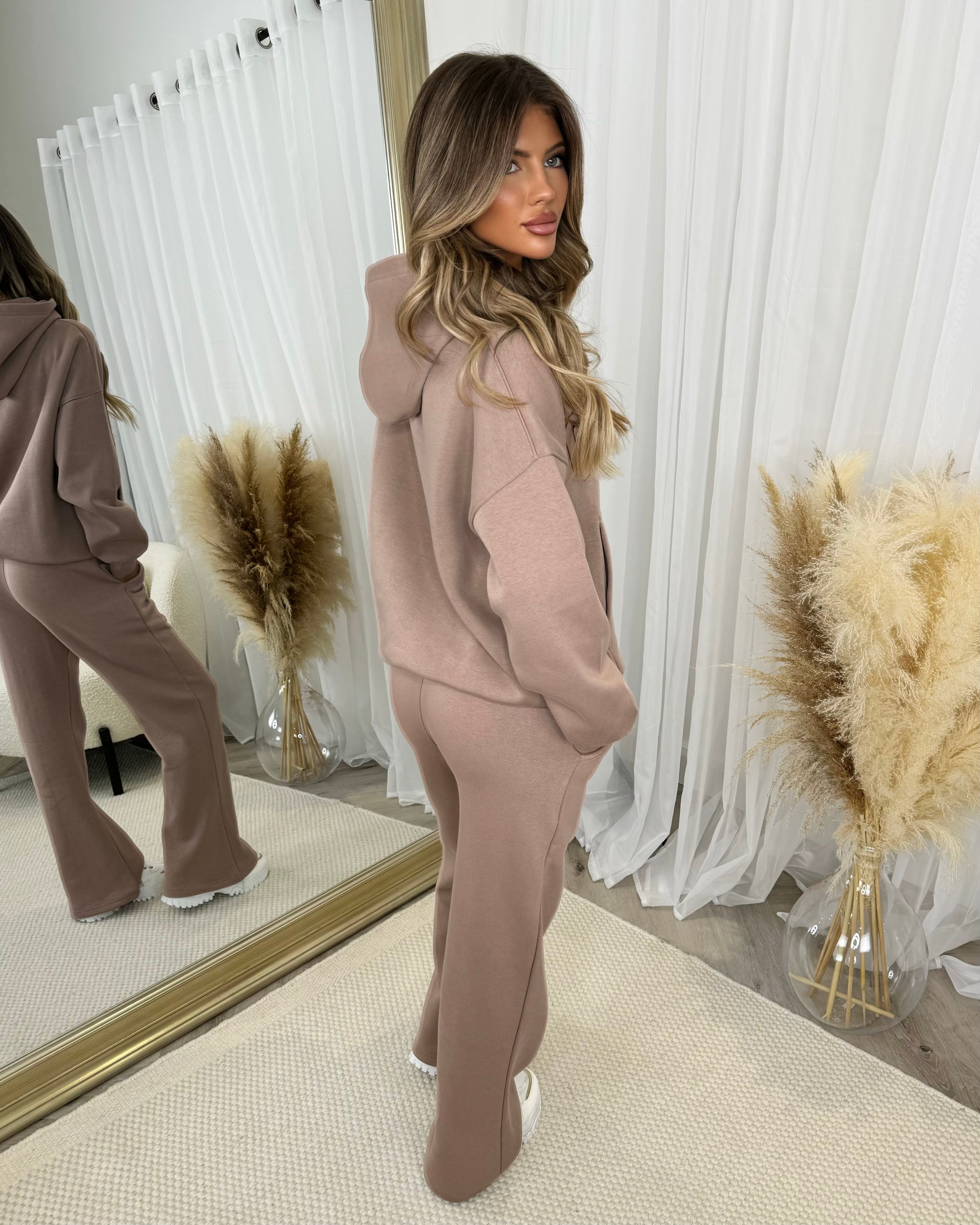 Emily 'GLAM' Embroidery Outline Front Design Fleece Lined Hoodie - Mocha