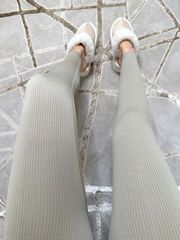 Kaci Ribbed Leggings - Taupe