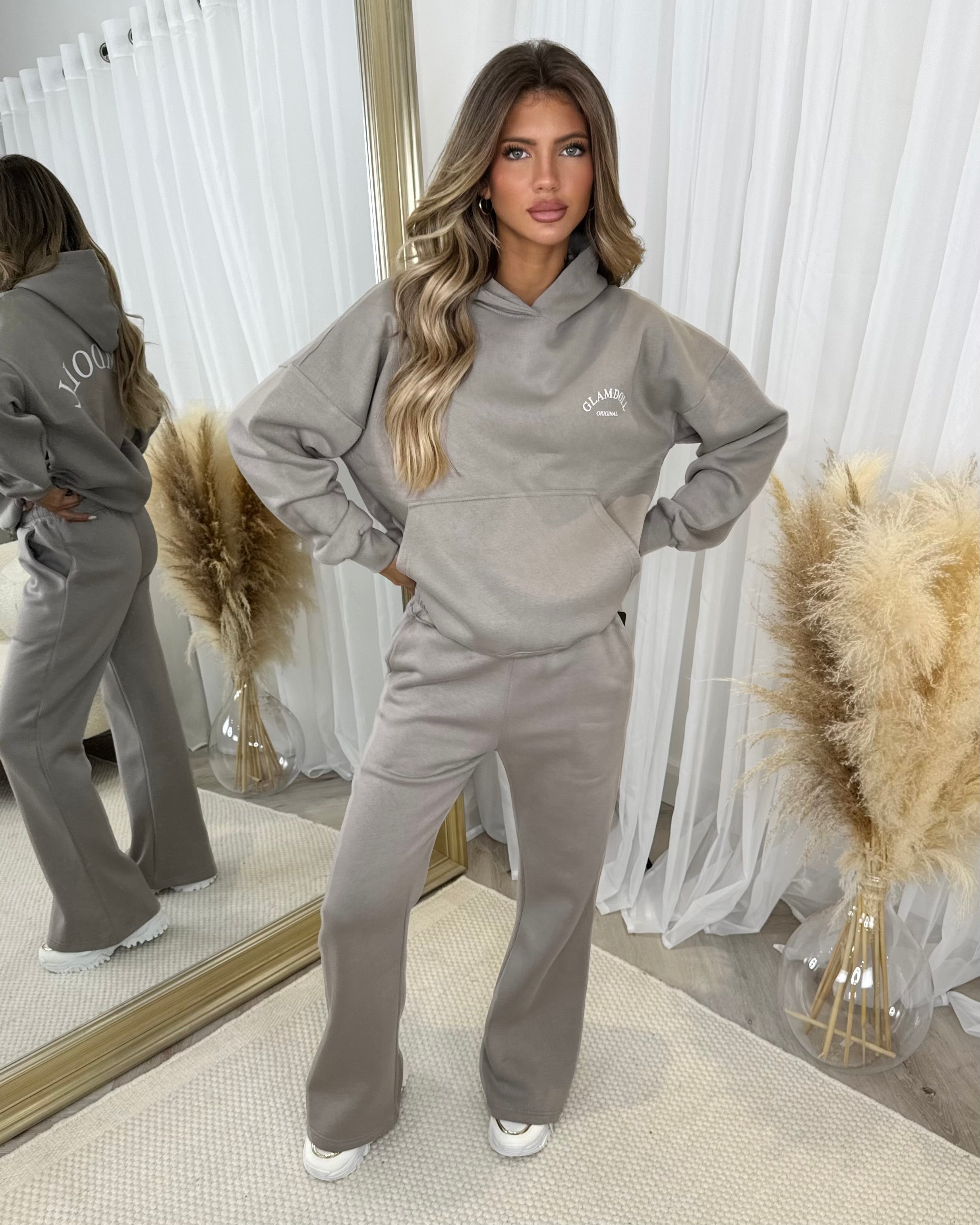Lydia 'GLAMDOLL ORIGINAL' Front & Back Print Design Fleece Lined Hoodie - Dove Grey