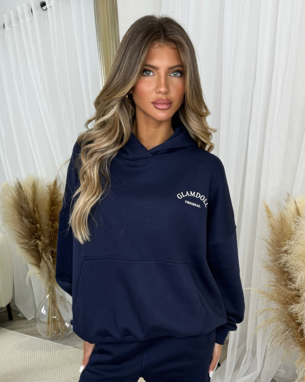 Lydia 'GLAMDOLL ORIGINAL' Front & Back Print Design Fleece Lined Hoodie - Navy