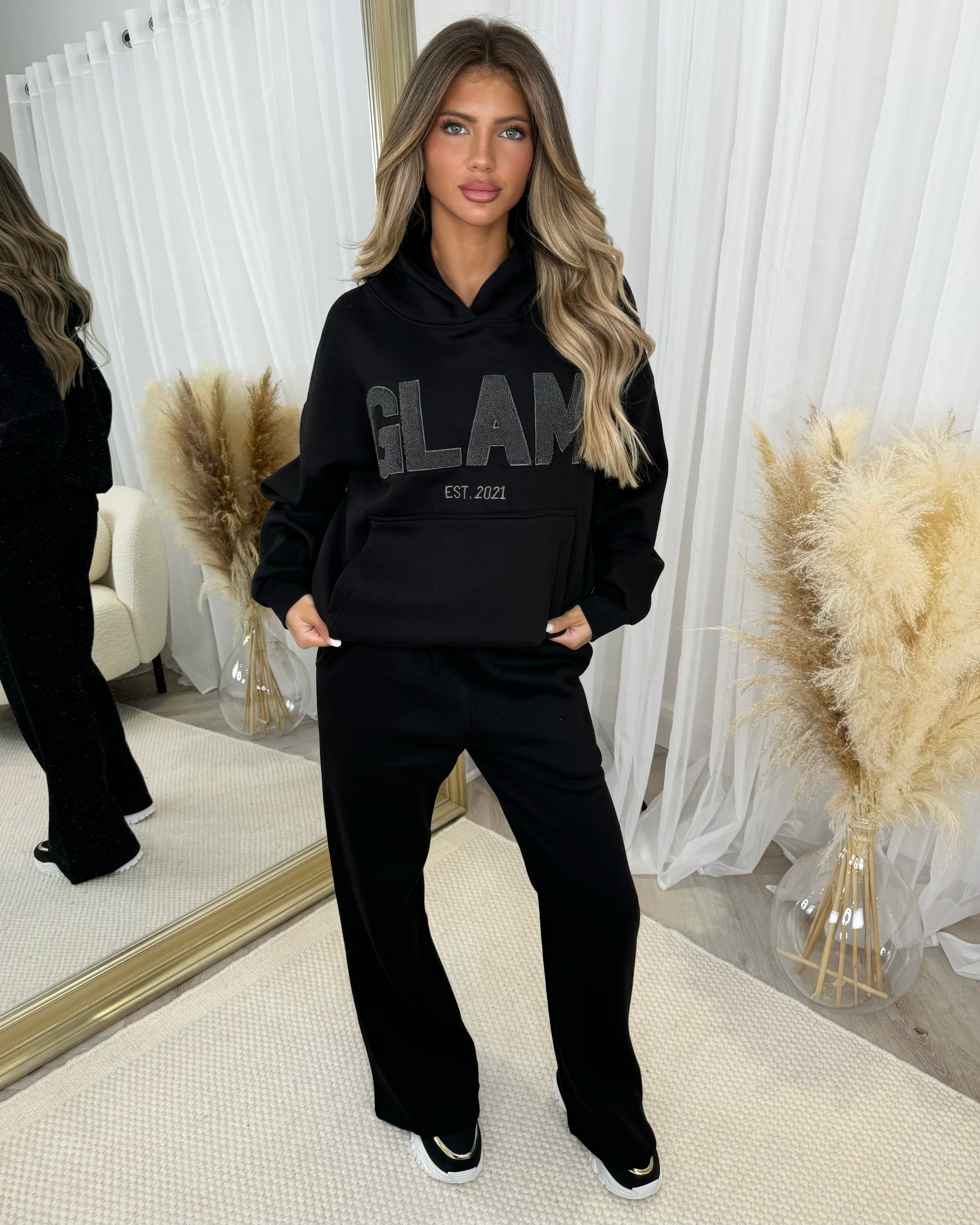 Millie 'GLAM' BOLD EMOBROIDERY Front Logo Print Hoodie - Black