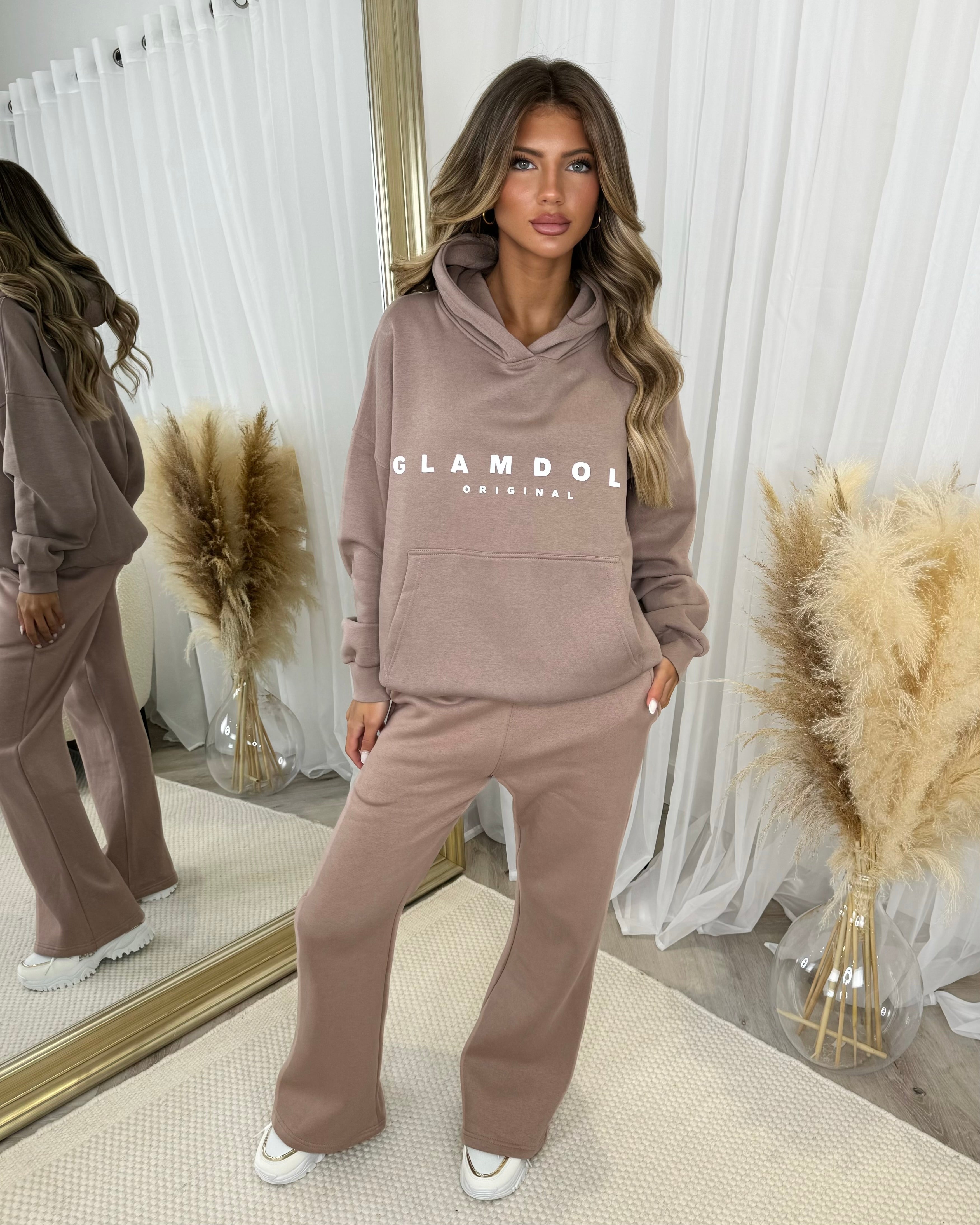 Skylar 'GLAMDOLL' High Density Front Detail Fleece Lined Hoodie - Mocha