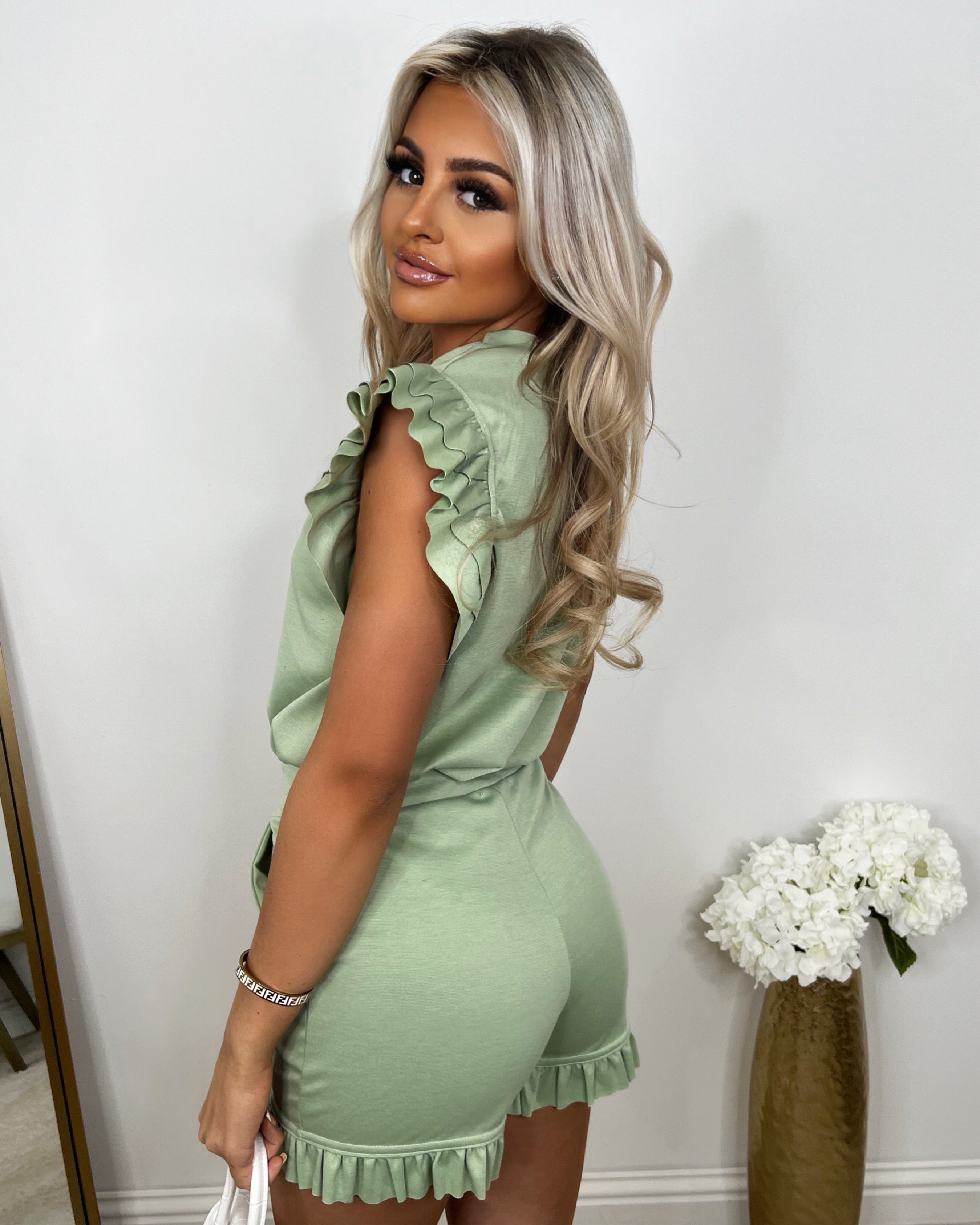 Violet Frill Short Sleeve Top & Short Set - Mint